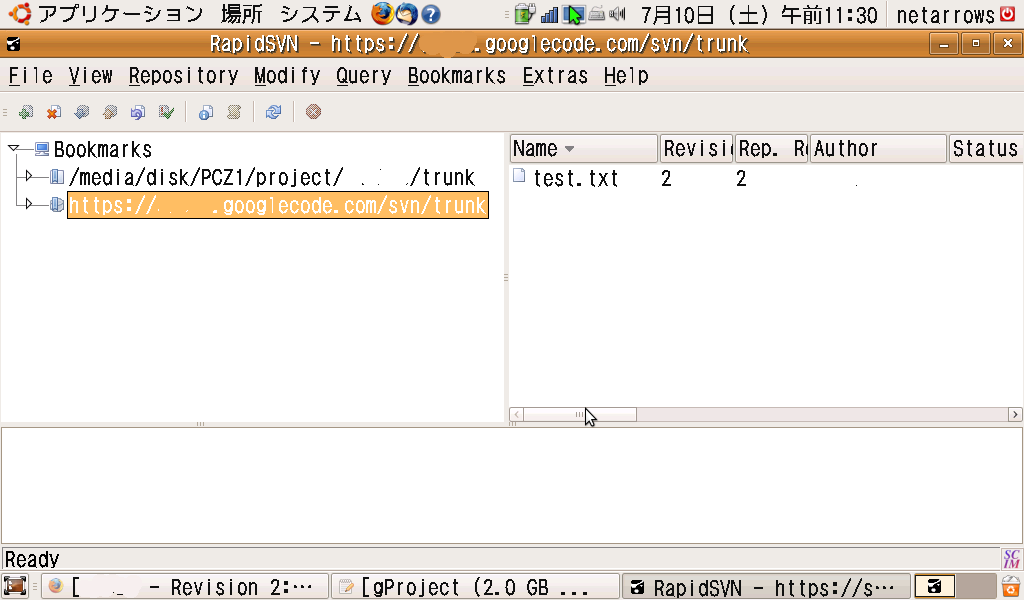 Google Project Hosting を利用するには、Subversion のクライアントが必要とのこと。Windows では TortoiseSVN 、Linux では RapidSVN、eSVN が良いそうだ。Netwalker の「アプリケーション」の「追加と削除」で検索すると、RapidSVN が出てきた。これに決めた。